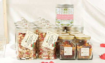 Jars and tins are always full of charm and are ideal to store a handful of nuts and berries in, definitely something awesome to share with your guests!
